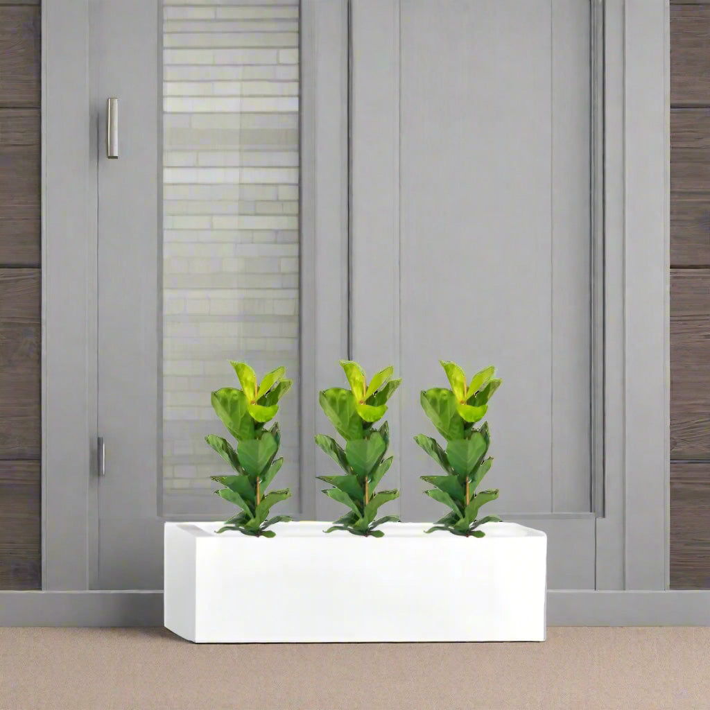Ficus Lyrata Trio in Rectangular Fiber Glass Planter (GRP) (70x30x30cm)